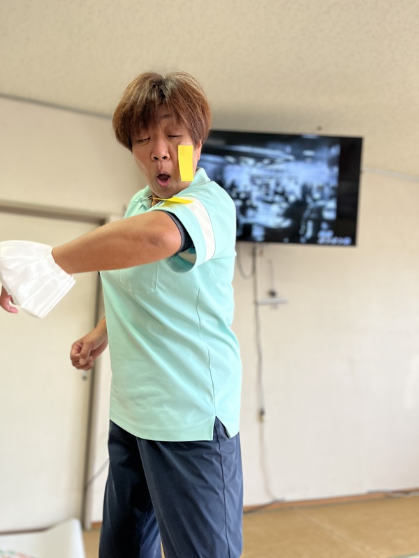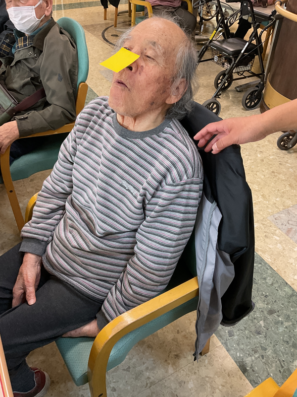 この競技には何人かの利用者さんにも参加していただきました。なかなか剥がせないフセンに一生懸命「フー!」と息を吹きかけて下さり、周りの職員や利用者さんから大きな歓声が上がりました。