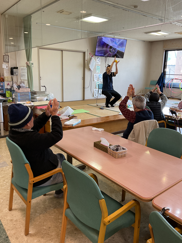 体操後は「肩がほぐれた。気持ち良かった」「家では体操や体を動かさないから」と言われていました。